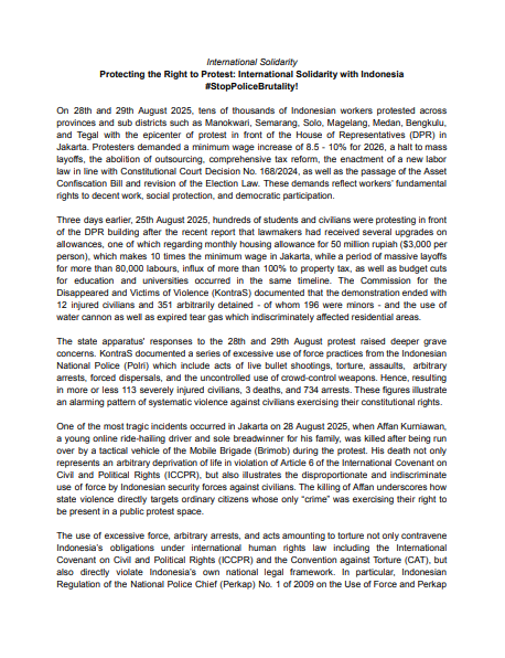 International Solidarity Protecting the Right to Protest: International Solidarity with Indonesia #StopPoliceBrutality!